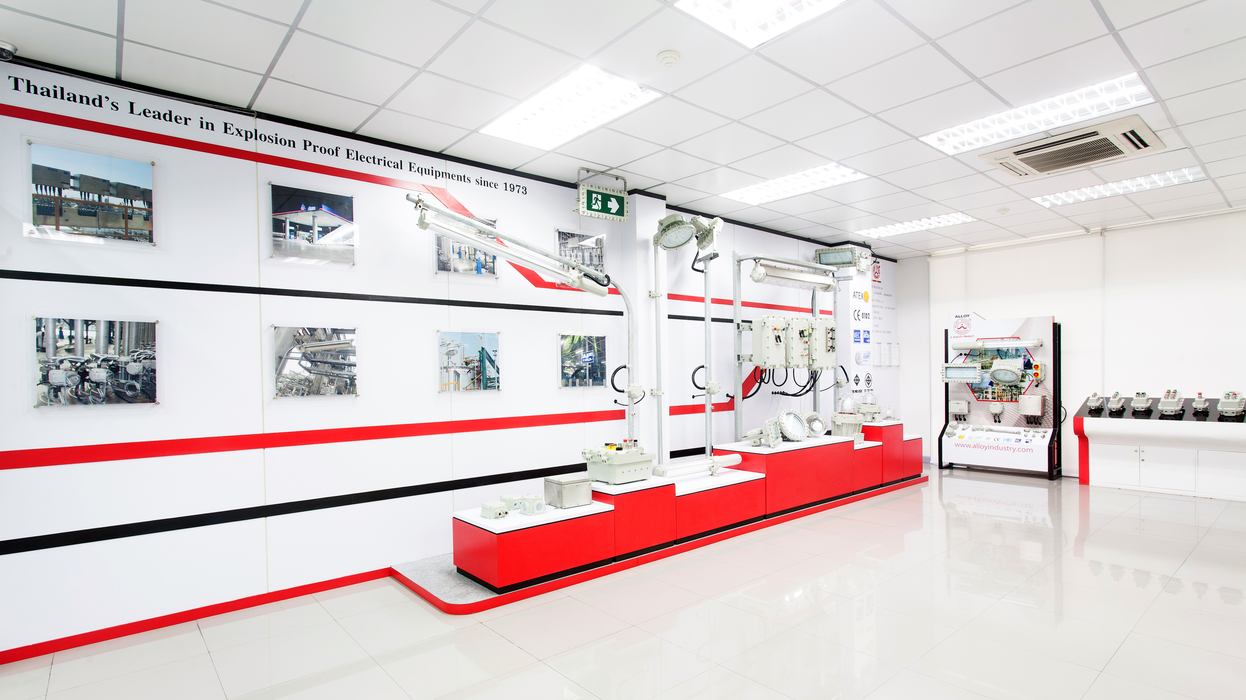 บริษัท อัลลอยอินดัสทรี จำกัด มีกระบวนการผลิตอุปกรณ์กันระเบิด โคมไฟกันระเบิด กล่องการระเบิด เป็นไปตามข้อกำหนดมาตรฐาน IEC / EN ได้รับการทดสอบและรับรองตาม ATEX Directive (2014/34 / EU)อัลลอยเป็นผู้ผลิตและผู้เชี่ยวชาญด้านอุปกรณ์กันการระเบิดมายาวนานกว่า48ปี